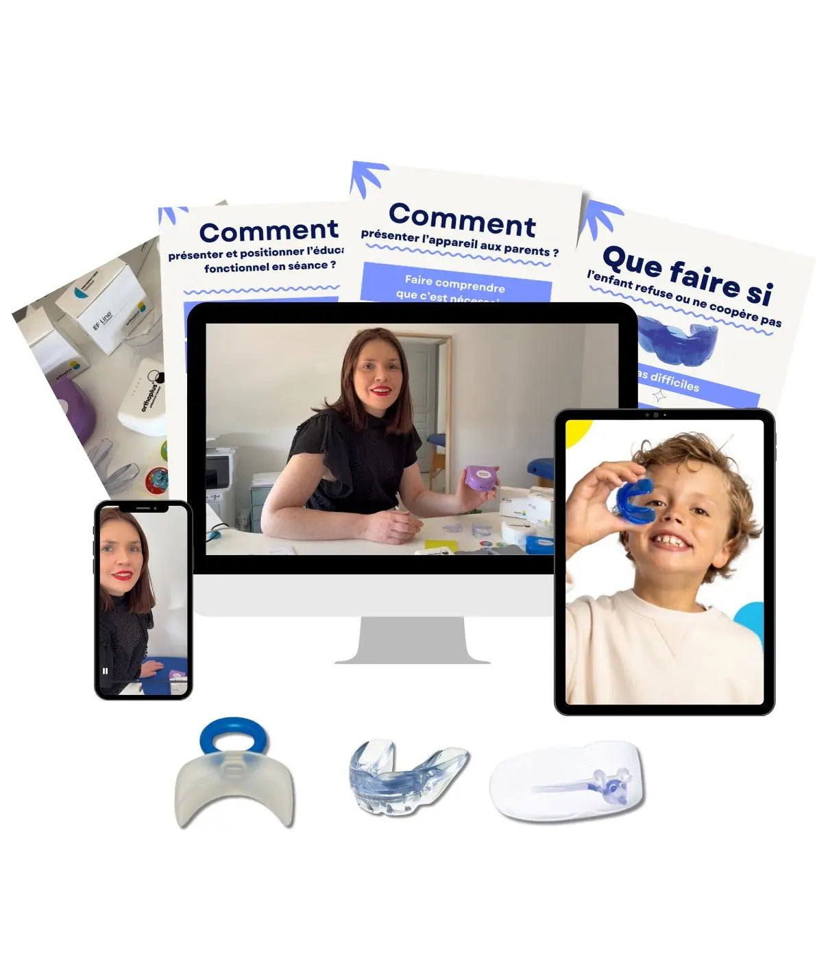 Vous êtes orthophoniste, kiné ou professionnel de santé ? Découvrez une formation ultra-pratique, conçue pour intégrer en toute confiance les éducateurs fonctionnels (écrans buccaux, intercepteurs labiaux, etc.) dans votre prise en charge des troubles oro-myofonctionnels.